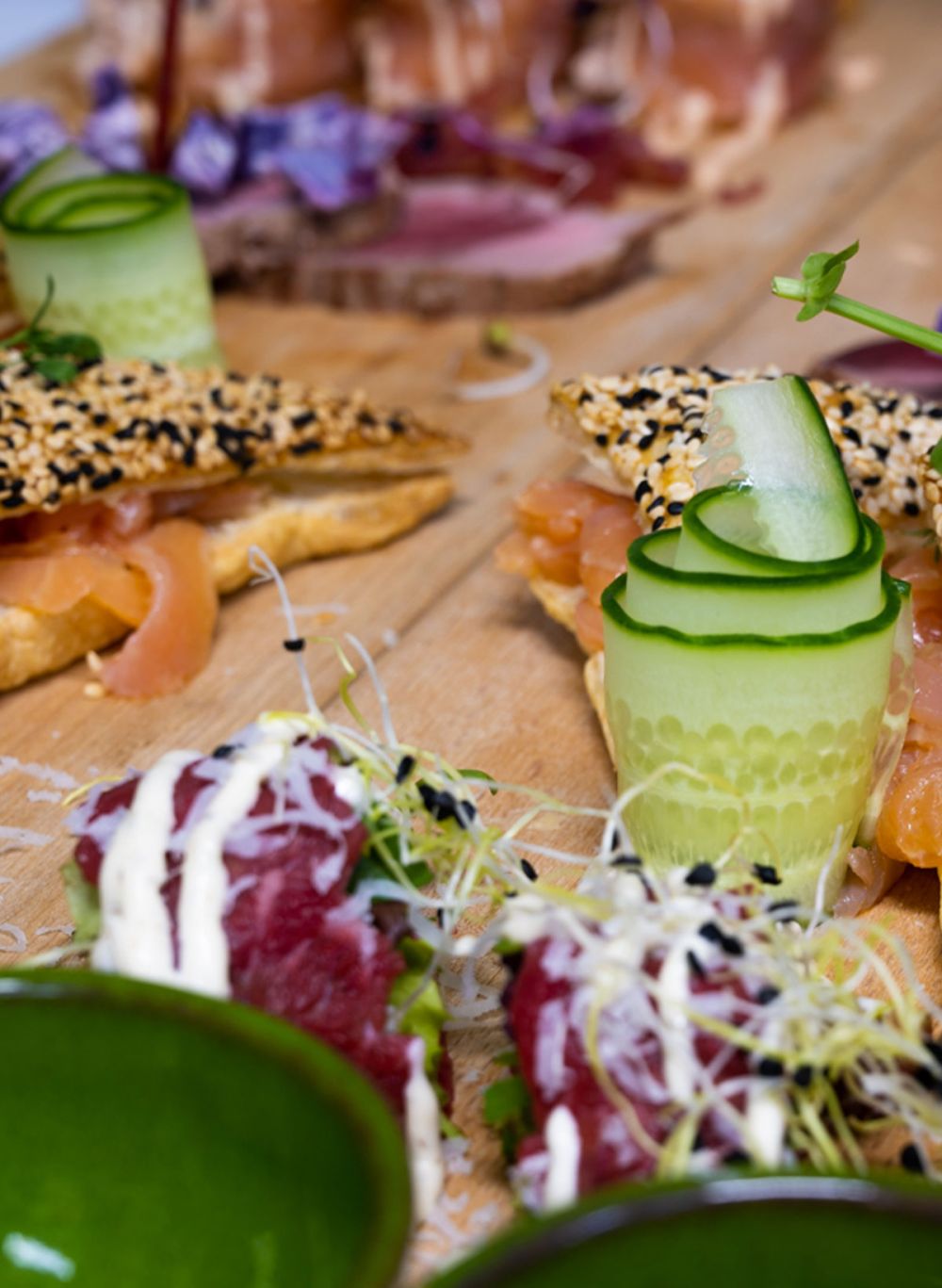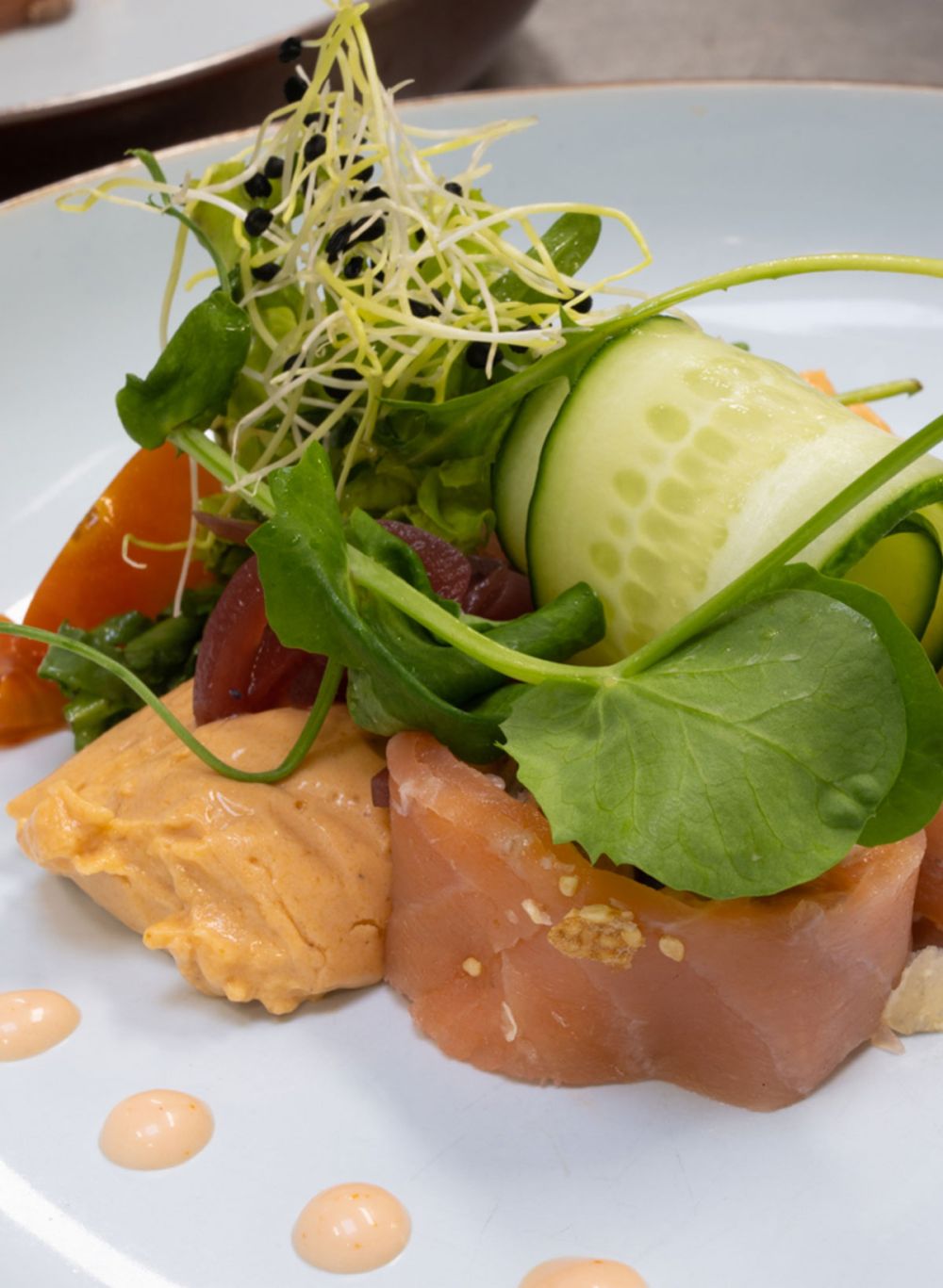 Gerookte Zalm | Makreelmousse | Avocado crème | Mosterd kaviaar