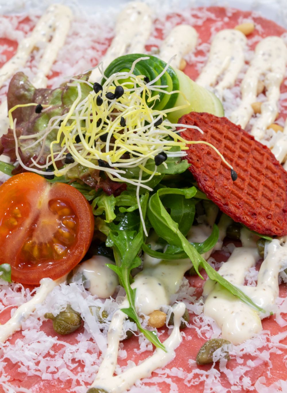 Carpaccio van Knol | Granaatappel | Kruidenolie | Zontomaat